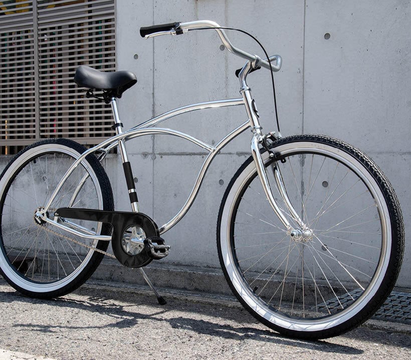 これぞクルーザーバイクなクラシックフレームに、ワイドハンドル、26" x 2.125"タイヤ、コースターブレーキ、センタースタンドを組み込み、アメリカンな雰囲気を纏ったスタイリッシュな本格仕様。