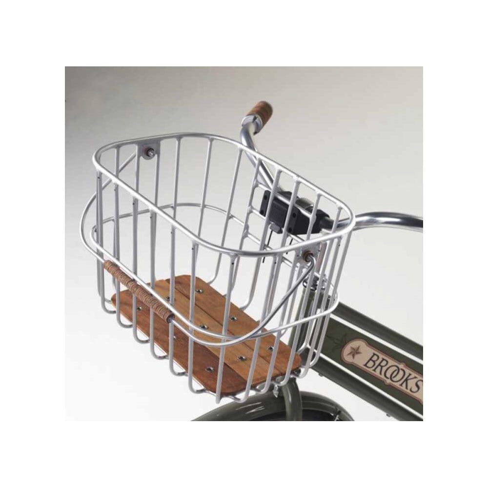 木製のベースと丸みを帯びたデザインのかわいらしいフロントキャリア